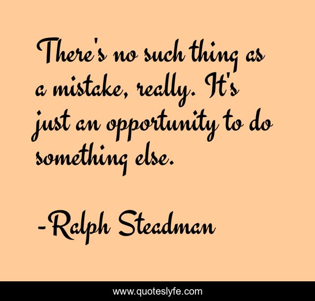 This page presents the quote "There's no such thing as a mistake, really. It's just an opportunity to do something else.". Author of this quote is Ralph Steadman. This quote is about flexibility, discipleship, adaptability, humility,.