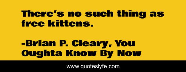 This page presents the quote "There’s no such thing as free kittens.". Author of this quote is Brian P. Cleary, You Oughta Know By Now. This quote is about money, observational-comedy, humor, observations, kittens,.