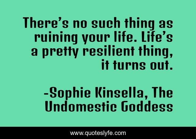 This page presents the quote "There’s no such thing as ruining your life. Life’s a pretty resilient thing, it turns out.". Author of this quote is Sophie Kinsella, The Undomestic Goddess. This quote is about life, ruins, resilience, truth,.