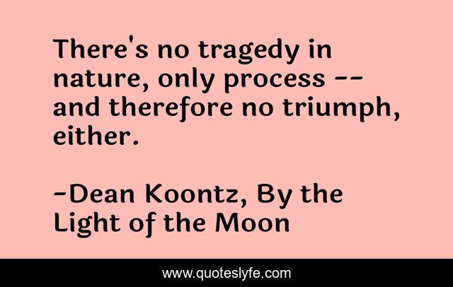 This page presents the quote "There's no tragedy in nature, only process -- and therefore no triumph, either.". Author of this quote is Dean Koontz, By the Light of the Moon. .