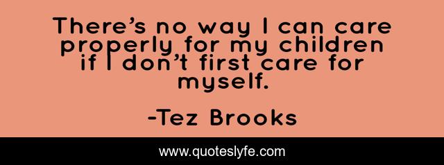 This page presents the quote "There’s no way I can care properly for my children if I don’t first care for myself.". Author of this quote is Tez Brooks. This quote is about single-dads, divorce, health,.
