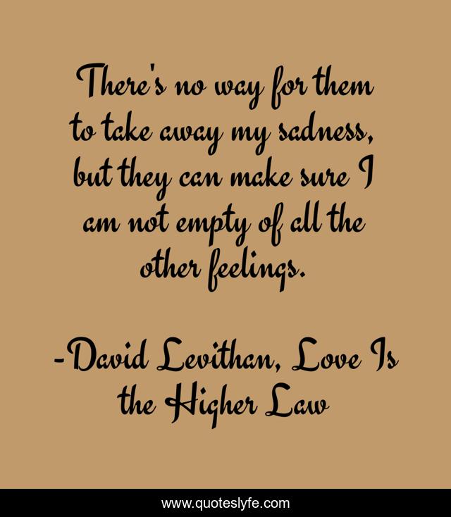 This page presents the quote "There's no way for them to take away my sadness, but they can make sure I am not empty of all the other feelings.". Author of this quote is David Levithan, Love Is the Higher Law. This quote is about comfort, friendship,.