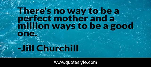 This page presents the quote "There's no way to be a perfect mother and a million ways to be a good one.". Author of this quote is Jill Churchill. This quote is about perfect, love, whanau, family, affection,.