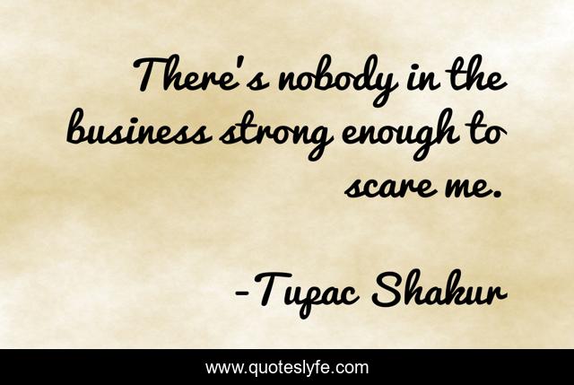 This page presents the quote "There's nobody in the business strong enough to scare me.". Author of this quote is Tupac Shakur. This quote is about me, nobody, strong,.