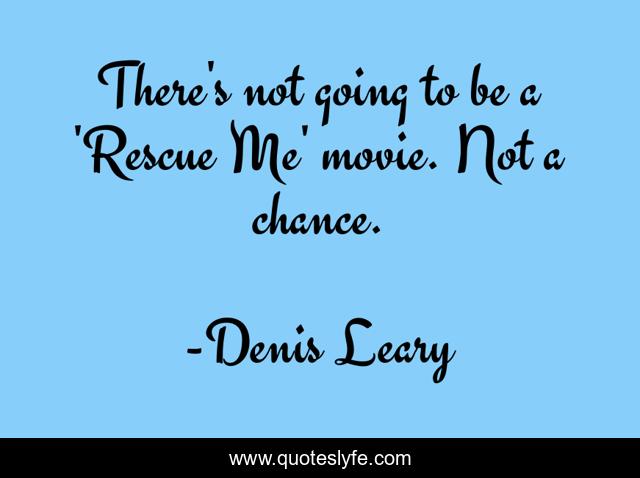 This page presents the quote "There's not going to be a 'Rescue Me' movie. Not a chance.". Author of this quote is Denis Leary. This quote is about me, going, rescue,.