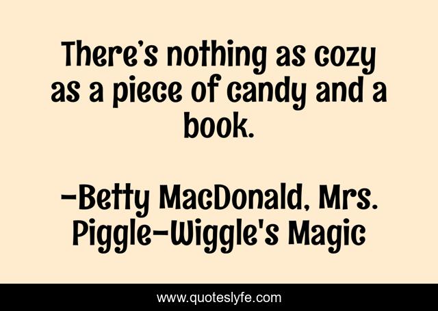 This page presents the quote "There’s nothing as cozy as a piece of candy and a book.". Author of this quote is Betty MacDonald, Mrs. Piggle-Wiggle's Magic. This quote is about books, cozy, candy, reading,.