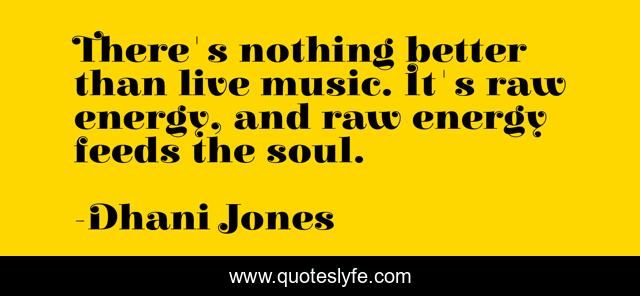 This page presents the quote "There's nothing better than live music. It's raw energy, and raw energy feeds the soul.". Author of this quote is Dhani Jones. This quote is about energy, live, soul,.