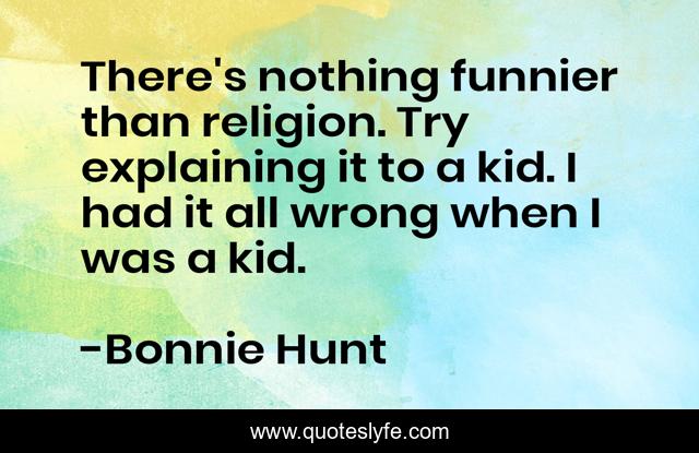 This page presents the quote "There's nothing funnier than religion. Try explaining it to a kid. I had it all wrong when I was a kid.". Author of this quote is Bonnie Hunt. This quote is about nothing, try, kid,.