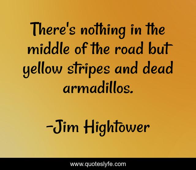 This page presents the quote "There's nothing in the middle of the road but yellow stripes and dead armadillos.". Author of this quote is Jim Hightower. .