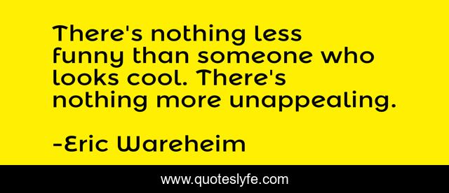 This page presents the quote "There's nothing less funny than someone who looks cool. There's nothing more unappealing.". Author of this quote is Eric Wareheim. This quote is about nothing, funny, comedy, looks,.
