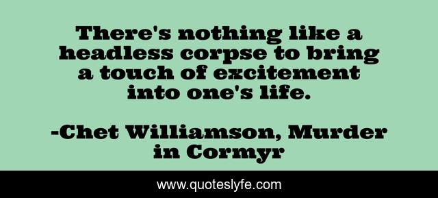 This page presents the quote "There's nothing like a headless corpse to bring a touch of excitement into one's life.". Author of this quote is Chet Williamson, Murder in Cormyr. This quote is about sarcasm, humourous, morbid,.