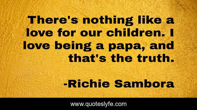 This page presents the quote "There's nothing like a love for our children. I love being a papa, and that's the truth.". Author of this quote is Richie Sambora. This quote is about nothing, love, children, affection,.