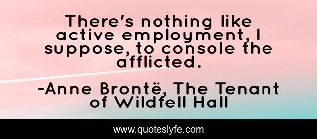 This page presents the quote "There's nothing like active employment, I suppose, to console the afflicted.". Author of this quote is Anne Brontë, The Tenant of Wildfell Hall. This quote is about work, consolation, affliction,.