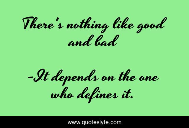 "It depends on the one who defines it. Quotes." Quoteslyfe.com, 2025. Sat. 06 Dec. 2025. <https://www.quoteslyfe.com/quote/There-s-nothing-like-good-and-bad-177670>.