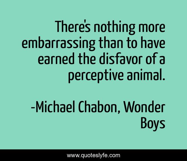 This page presents the quote "There's nothing more embarrassing than to have earned the disfavor of a perceptive animal.". Author of this quote is Michael Chabon, Wonder Boys. .