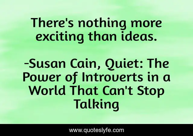 "Susan Cain, Quiet: The Power of Introverts in a World That Can't Stop Talking Quotes." Quoteslyfe.com, 2025. Mon. 08 Dec. 2025. <https://www.quoteslyfe.com/quote/There-s-nothing-more-exciting-than-ideas-205289>.