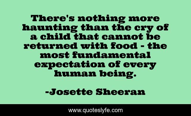 This page presents the quote "There's nothing more haunting than the cry of a child that cannot be returned with food - the most fundamental expectation of every human being.". Author of this quote is Josette Sheeran. This quote is about expectation, human, child,.