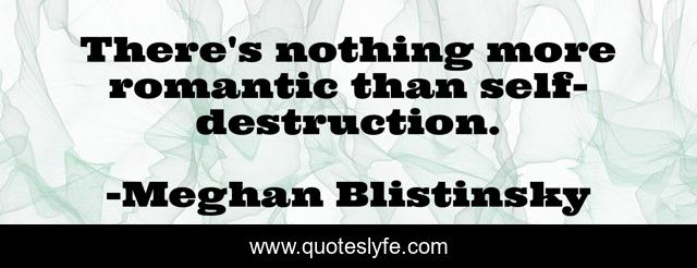 This page presents the quote "There's nothing more romantic than self-destruction.". Author of this quote is Meghan Blistinsky. This quote is about self-destruction, morbid-romance, self-hate, romantic,.