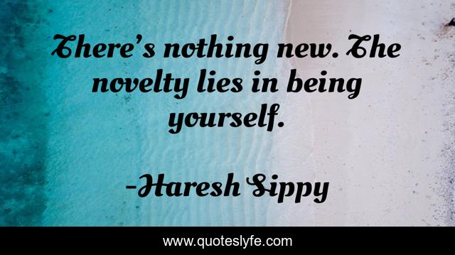 This page presents the quote "There’s nothing new. The novelty lies in being yourself.". Author of this quote is Haresh Sippy. This quote is about be-yourself, newness, novelty,.