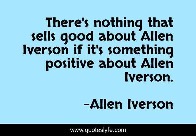 This page presents the quote "There's nothing that sells good about Allen Iverson if it's something positive about Allen Iverson.". Author of this quote is Allen Iverson. This quote is about nothing, good, something,.