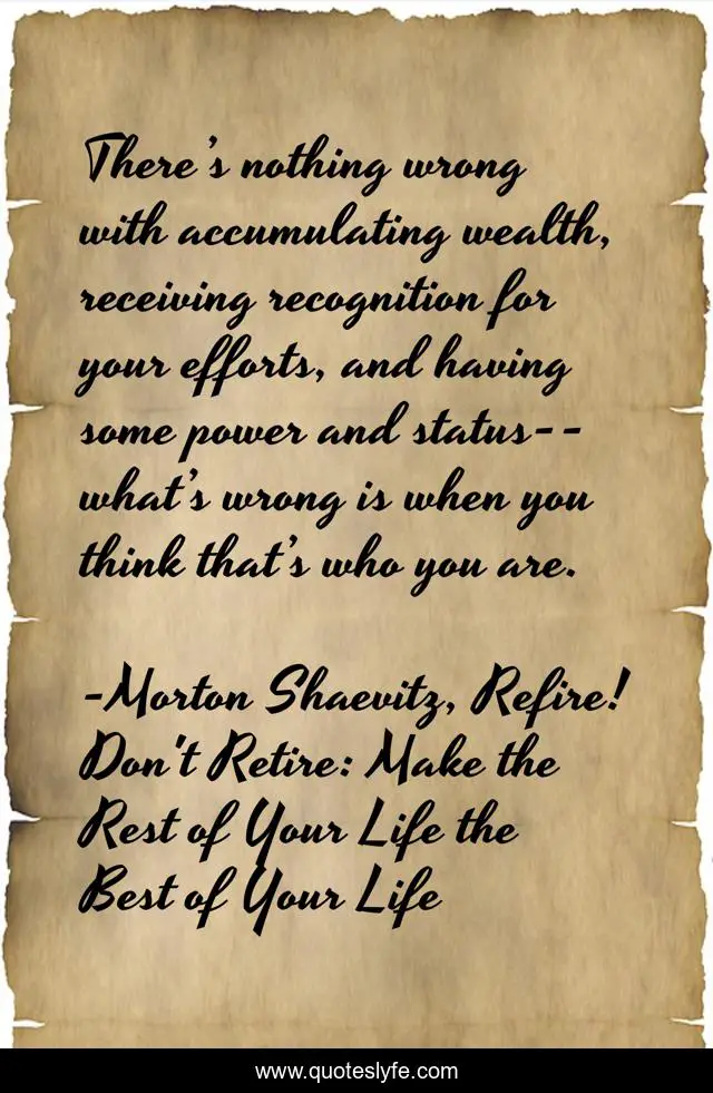 "Morton Shaevitz, Refire! Don't Retire: Make the Rest of Your Life the Best of Your Life Quotes." Quoteslyfe.com, 2025. Fri. 05 Dec. 2025. <https://www.quoteslyfe.com/quote/There-s-nothing-wrong-with-accumulating-wealth-88821>.