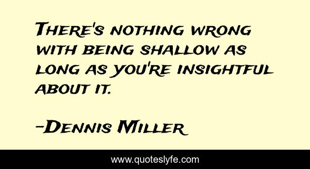 This page presents the quote "There's nothing wrong with being shallow as long as you're insightful about it.". Author of this quote is Dennis Miller. .