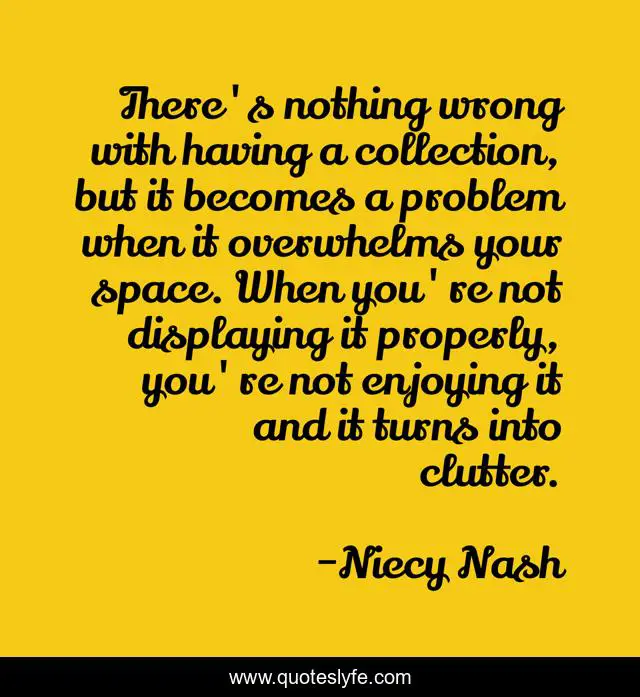This page presents the quote "There's nothing wrong with having a collection, but it becomes a problem when it overwhelms your space. When you're not displaying it properly, you're not enjoying it and it turns into clutter.". Author of this quote is Niecy Nash. This quote is about nothing, problem,.