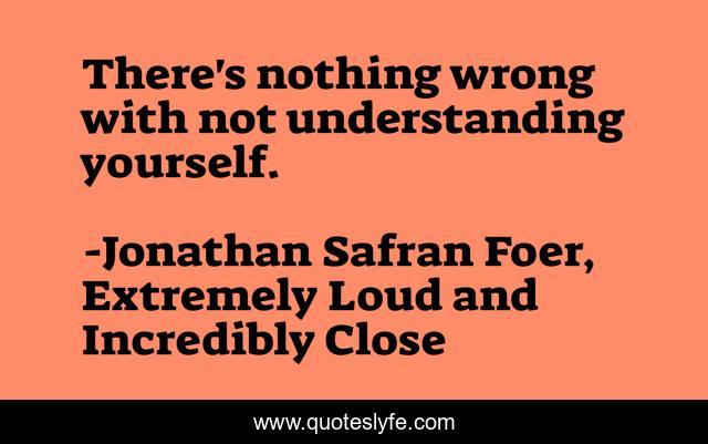 This page presents the quote "There's nothing wrong with not understanding yourself.". Author of this quote is Jonathan Safran Foer, Extremely Loud and Incredibly Close. This quote is about life, people,.