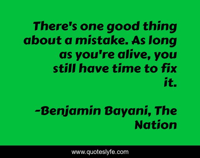 This page presents the quote "There's one good thing about a mistake. As long as you're alive, you still have time to fix it.". Author of this quote is Benjamin Bayani, The Nation. This quote is about failure, life, mistakes,.