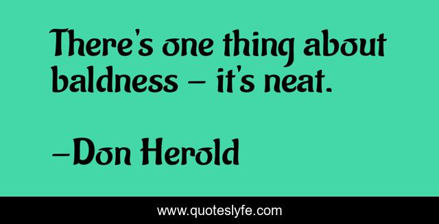This page presents the quote "There's one thing about baldness - it's neat.". Author of this quote is Don Herold. This quote is about personal, appearance,.