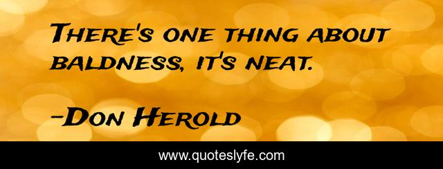 This page presents the quote "There's one thing about baldness, it's neat.". Author of this quote is Don Herold. This quote is about one thing, baldness,.