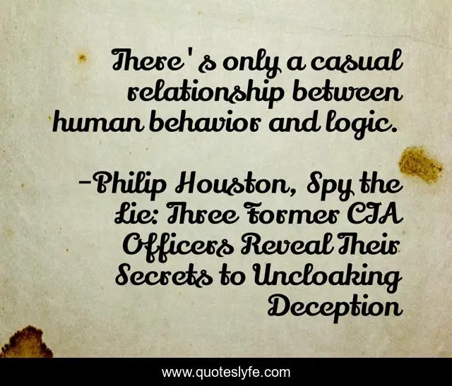 This page presents the quote "There's only a casual relationship between human behavior and logic.". Author of this quote is Philip Houston, Spy the Lie: Three Former CIA Officers Reveal Their Secrets to Uncloaking Deception. This quote is about emotion, assumptions,.