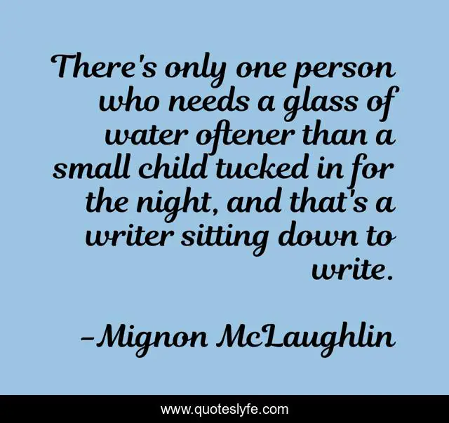 This page presents the quote "There's only one person who needs a glass of water oftener than a small child tucked in for the night, and that's a writer sitting down to write.". Author of this quote is Mignon McLaughlin. This quote is about writers, humor, children, writing,.