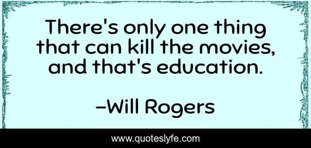This page presents the quote "There's only one thing that can kill the movies, and that's education.". Author of this quote is Will Rogers. This quote is about one thing, only, education,.