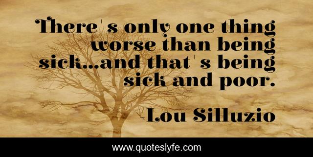 This page presents the quote "There's only one thing worse than being sick...and that's being sick and poor.". Author of this quote is Lou Silluzio. .