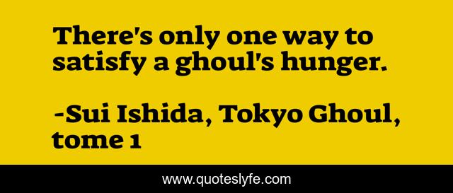 This page presents the quote "There's only one way to satisfy a ghoul's hunger.". Author of this quote is Sui Ishida, Tokyo Ghoul, tome 1. This quote is about horror, manga, yoshimura, anteiku,.