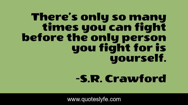 This page presents the quote "There’s only so many times you can fight before the only person you fight for is yourself.". Author of this quote is S.R. Crawford. This quote is about teen, life, harsh, ya, vampire, reality, inspiration,.