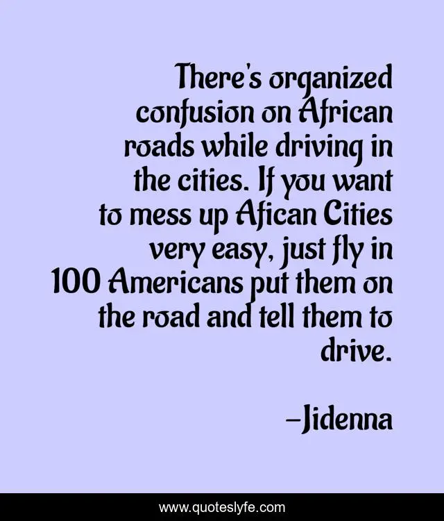 "Jidenna Quotes." Quoteslyfe.com, 2025. Tue. 09 Dec. 2025. <https://www.quoteslyfe.com/quote/There-s-organized-confusion-on-African-roads-79214>.