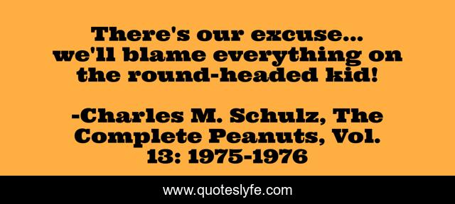"Charles M. Schulz, The Complete Peanuts, Vol. 13: 1975-1976 Quotes." Quoteslyfe.com, 2025. Sat. 06 Dec. 2025. <https://www.quoteslyfe.com/quote/There-s-our-excuse-we-ll-blame-56483>.