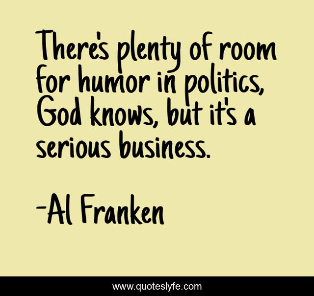 This page presents the quote "There's plenty of room for humor in politics, God knows, but it's a serious business.". Author of this quote is Al Franken. This quote is about god, business, politics,.