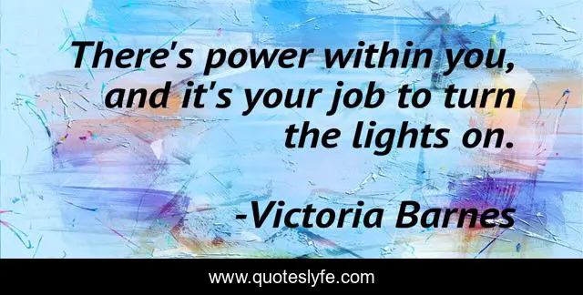 This page presents the quote "There's power within you, and it's your job to turn the lights on.". Author of this quote is Victoria Barnes. This quote is about enthusiasm, inspirational, self-help,.