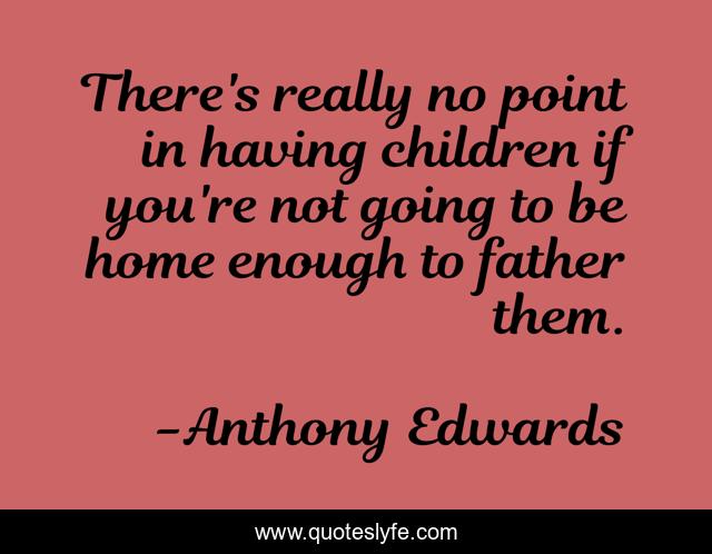 This page presents the quote "There's really no point in having children if you're not going to be home enough to father them.". Author of this quote is Anthony Edwards. This quote is about home, father, children,.