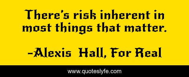 This page presents the quote "There’s risk inherent in most things that matter.". Author of this quote is Alexis Hall, For Real. This quote is about m-m, risk,.
