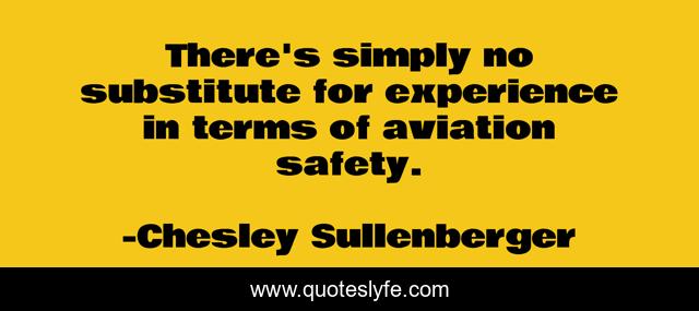 This page presents the quote "There's simply no substitute for experience in terms of aviation safety.". Author of this quote is Chesley Sullenberger. This quote is about aviation, safety, substitute,.