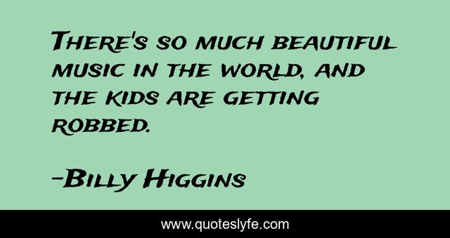 This page presents the quote "There's so much beautiful music in the world, and the kids are getting robbed.". Author of this quote is Billy Higgins. This quote is about beautiful, world, kids,.