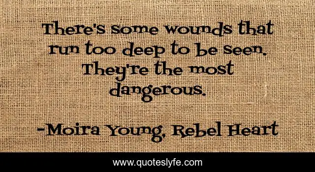 This page presents the quote "There's some wounds that run too deep to be seen. They're the most dangerous.". Author of this quote is Moira Young, Rebel Heart. This quote is about past, wounds, hurt,.