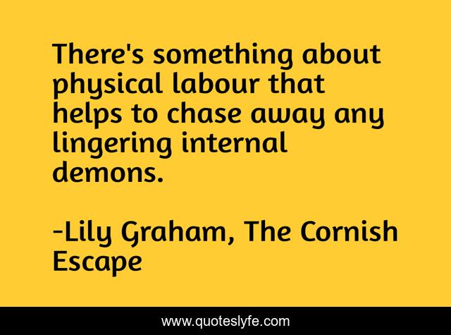 This page presents the quote "There's something about physical labour that helps to chase away any lingering internal demons.". Author of this quote is Lily Graham, The Cornish Escape. .
