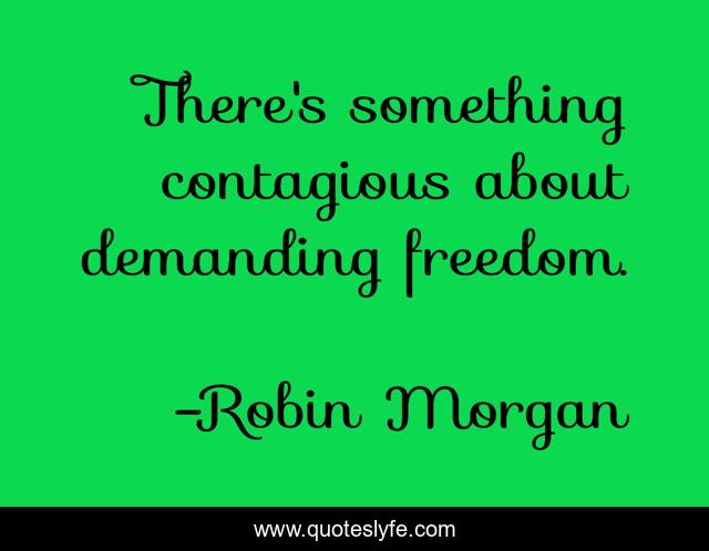 This page presents the quote "There's something contagious about demanding freedom.". Author of this quote is Robin Morgan. This quote is about something, contagious,.