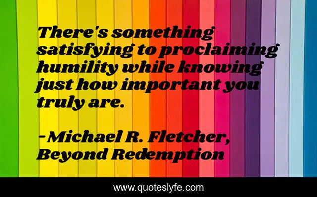 "Michael R. Fletcher, Beyond Redemption Quotes." Quoteslyfe.com, 2025. Sun. 07 Dec. 2025. <https://www.quoteslyfe.com/quote/There-s-something-satisfying-to-proclaiming-humility-179327>.
