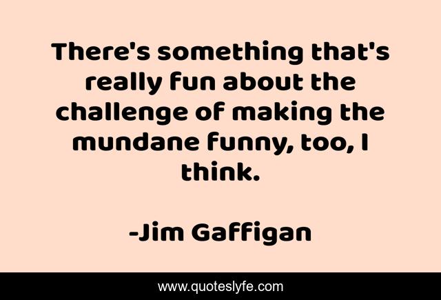 This page presents the quote "There's something that's really fun about the challenge of making the mundane funny, too, I think.". Author of this quote is Jim Gaffigan. This quote is about fun, challenge, think,.